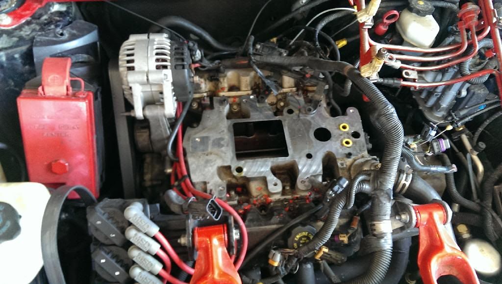 Off comes the junk Gen III, Garbage. Look at all that red paint that flaked off my fuel rails