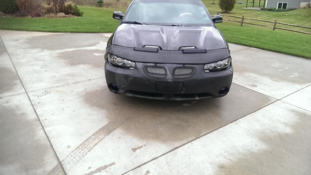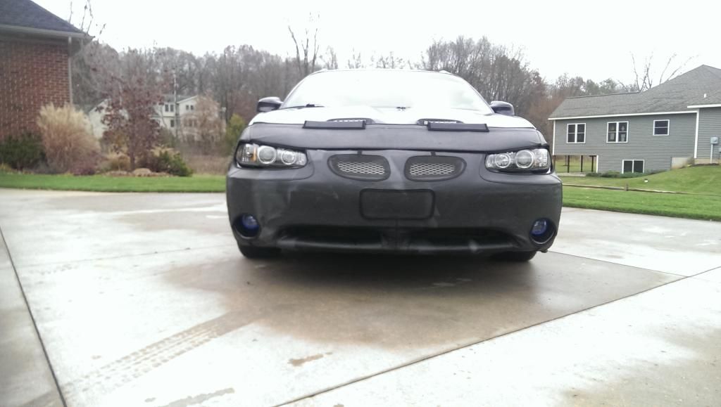 I bought the bra off craigslist for $10 only. It was missing some pieces but I improvised. I drilled a hole in the bra and screwed into the side with the fender screws that were originally on the car.