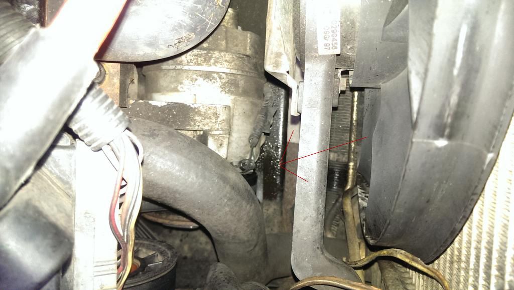 Underneath the A/c Compressor was some coolant: