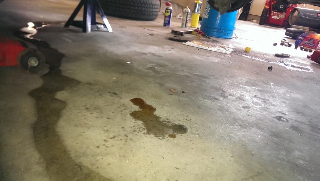Had the front of the car jacked up when I was replacing the front brake pads two days ago. This is when I noticed the leak.