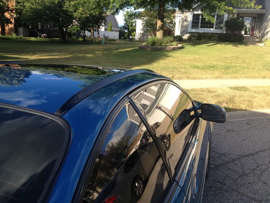 Got the car buffed and polished today and holy cow what a difference. I had swirl marks and streaks of scratches on every inch of paint on my car. The mirrors and front bumper were also nearly white due to the amount of rock chips and such. All of these are now completely non existent. The car looks practically new besides for all the door dings and hail dents. And in other good news, it gets to sit outside 24/7/365! Still trying to find appropriate time to get my darn VS cam in and tuned by PRJ since classes resume mid August. But, my ported blower should be going on tomorrow with the help of a buddy at work, hopefully we can knock it out in 3 hours after work. I couldn't find a spot that wasn't populated around home to take good pictures, so i snapped some when i got home.