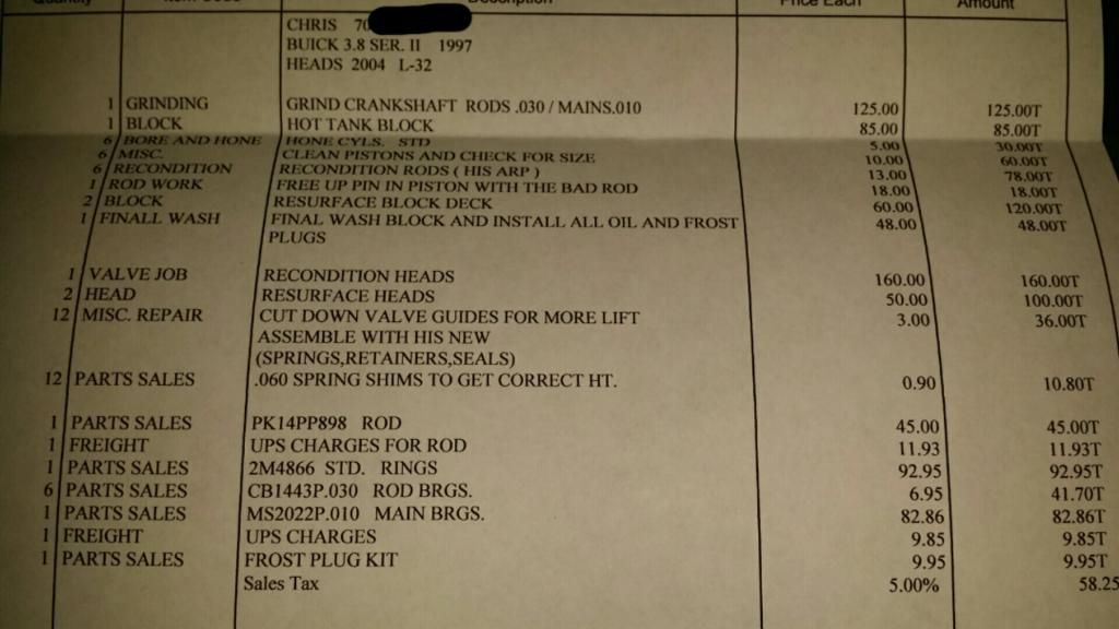 Hard to say seeing how most of the reconditioning machine work is being done by a buddy. Not including the cam im at about $500 but that is with a lot of ARP fasteners and those are not cheap. This ts not cheapest route to get it back up and running. My last 3800 3.0 S1X build had 26k on it. Then I got into a 26 car pile up with it in Milwaukee so that was the end of that one.